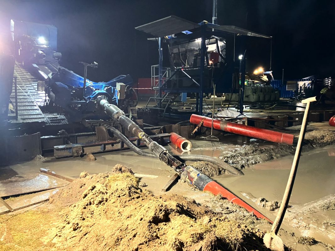 Das Bohrloch der ersten Bohrung wurde saniert, und im Anschluss konnte die erste Bohrung mit dem neuen Bohrprofil fertig gestellt werden.
