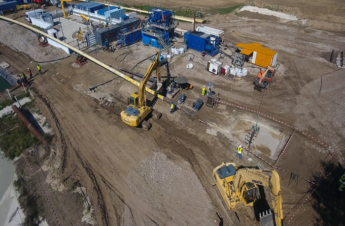 The first pullback was followed by an exhilarating pipe fest and the moving of the drill rig and the preparation, in parallel, of the additional drilling rig on the Romanian construction site near Comasca.