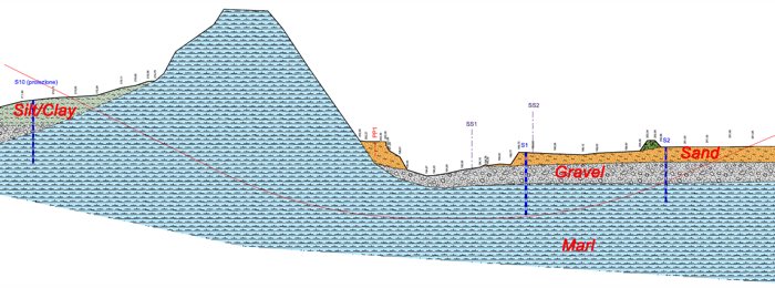 The design of such a intervention was based on the results of the subsoil investigation performed on behalf of the Client, which pointed out the stratigraphical subsoil situation consisting of a marny rock substratum covered by coarse fluvial alluvium with sand, gravel and cobbles.