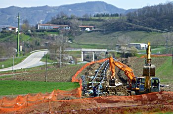 The activities for drilling the hole and installing the 8” pipeline under the bed of the river Bormida at Mombaldone were successfully carried out in the range of 6 days, from 25th March to 30th March. The drilling reached with high precision the exit target and the pipeline was easily and without any damage installed in the hole.