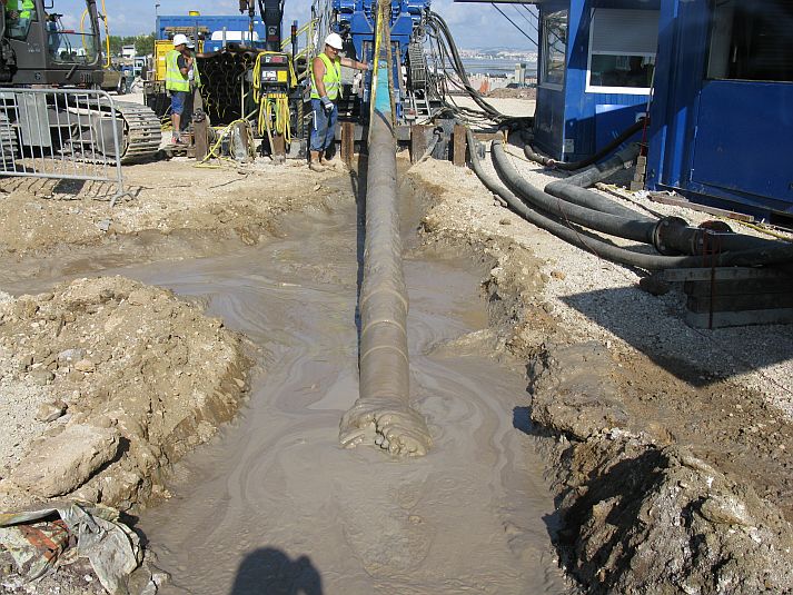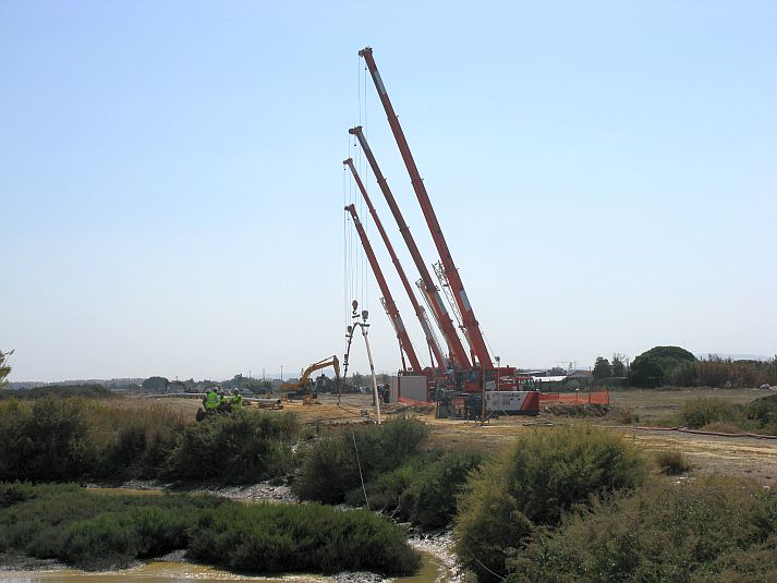 The entry points were close to an industrial area of the town Lavradio approx. 8,5 km southeast of Lisbon. LMR Drilling GmbH used the modular 250/120.2 rig with a maximum pulling force of 2500 kN and a maximum torque of 1200 kNm.
