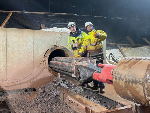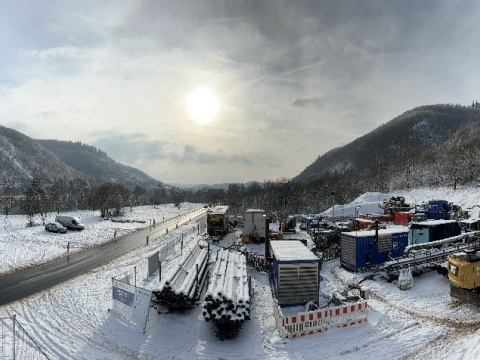 Nach weniger als 20 Einzelschichten im 24/7 Std.-Betrieb wurde das Aufweiten am 27.01.2024 beendet. Die Gefahr einer Zunahme des Wasserzulaufes in das aufgeweitete Bohrloch bestätigte sich nicht.