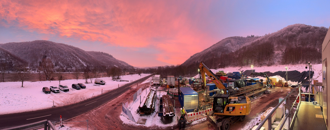Nach einer Verlängerung der Winterpause, die Überschwemmungen im Bereich des Moseltals geschuldet war, musste die Baustelle auf Schäden geprüft werden. Es wurde festgestellt, dass der gesicherte Hang im Hangeinschnitt teilweise abgerutscht war. Ursächlich dafür waren Starkniederschlagsereignisse im Zeitraum zwischen Weihnachten und Neujahr. Bei einem Treffen mit Auftraggeber und LMR Anfang Januar 2024 wurden gemeinsam Lösungen erarbeitet und umgehend durch den Auftraggeber umgesetzt.